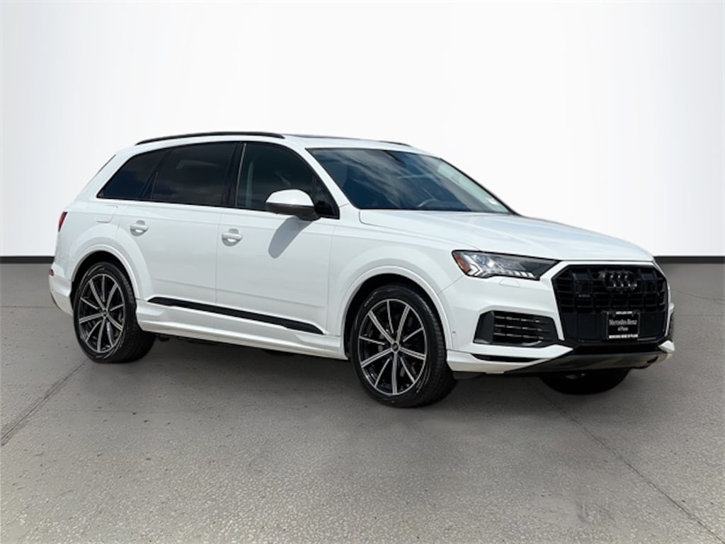 2023 Audi Q7 55 Prestige quattro Q7 55 Prestige quattro, 4D Sport Utility, 3.0L TFSI, 8-Speed Automatic with Tiptronic, quattro, White, Black Leather, 4-Zone Automatic Climate Control, Adaptive Cruise Assist w/Lane Guidance, Audi Phone Box w/Wireless Charging, Bang & Olufsen Premium Sound System w/3D Sound, Black Optic Package, Comfort Adaptive Air Suspension, Contour/Ambient LED Interior Lighting Package, Convenience Package, Dinamica Headliner, Dual-Pane Acoustic Glass for Side Windows, Executive Package, Front Seats w/Ventilation, Head-Up Display, Heated Rear Seats, Heated Steering Wheel, Illuminated Door Sills, Individual Contour Front Seats, Intersection Assist, Luxury Package, Navigation system: Audi MMI Navigation plus with Touch Response, Power moonroof: Panoramic, Power Soft-Closing Doors, Prestige Package, Rear Door/Side Windows & Tailgate Sunshades, Remote Park Assist Plus, Topview Camera System, Tow Hitch Receiver, Towing Package, Traffic Sign Recognition, Valcona/Cricket Leather Seat Trim, Wheels: 20" 5-Spoke Turbine-Design, Wheels: 21" 10-Spoke-Star-Design Bi-Color Black.