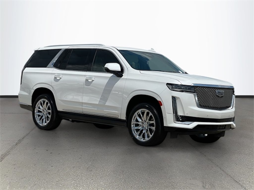2023 Cadillac Escalade Premium Luxury Platinum Escalade Premium Luxury Platinum, 4D Sport Utility, 6.2L V8, 10-Speed Automatic, RWD, Crystal White Tricoat, Whisper Beige With Gideon Accents Leather, Adaptive Cruise Control, Air Ride Adaptive Suspension, AKG Studio Reference 36-Speaker Audio System, Automatic Seat Belt Tightening, Bright Sport Mesh Grille (LPO), Door Lock & Latch Shields, Electronic Limited-Slip Differential, Enhanced Automatic Emergency Braking, Enhanced Automatic Parking Assist, Floor Console w/Covered Storage, Front Auxiliary 12-volt Power Outlet, Glass Breakage Sensor, Heated & Ventilated Driver & Front Passenger Seats, Hitch Guidance w/Hitch View, Illuminating Front & Rear Sill Plates, Integrated Trailer Brake Controller, Monochrome Cadillac Emblems (LPO), Navigation System, Platinum Interior Trim, Power Lumbar Massage Driver Seat, Power Lumbar Massage Front Passenger Seat, Power Panoramic Tilt-Sliding Sunroof, Preferred Equipment Group 1SG, Radiant Package (LPO), Rear Camera Mirror, Rear Camera Mirror Washer, Rear Cross Traffic Alert, Rear Seat Entertainment System, Reconfigurable Full-Color Head-Up Display, Reverse Automatic Braking, Running Board Assist Steps, Smart Trailer Integration Indicator, Soft Closing Front & Rear Doors, Theft-Deterrent Alarm System, Touring Package, Trailer Side Blind Zone Alert, Vehicle Inclination Sensor, Vehicle Interior Movement Sensor, Wheels: 22" 12-Spoke Chrome Alloy (LPO), Wheels: 22" Interim (LPO).